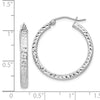 Sterling Silver Rhodium Plated Diamond Cut 3x25mm Hoop Earrings